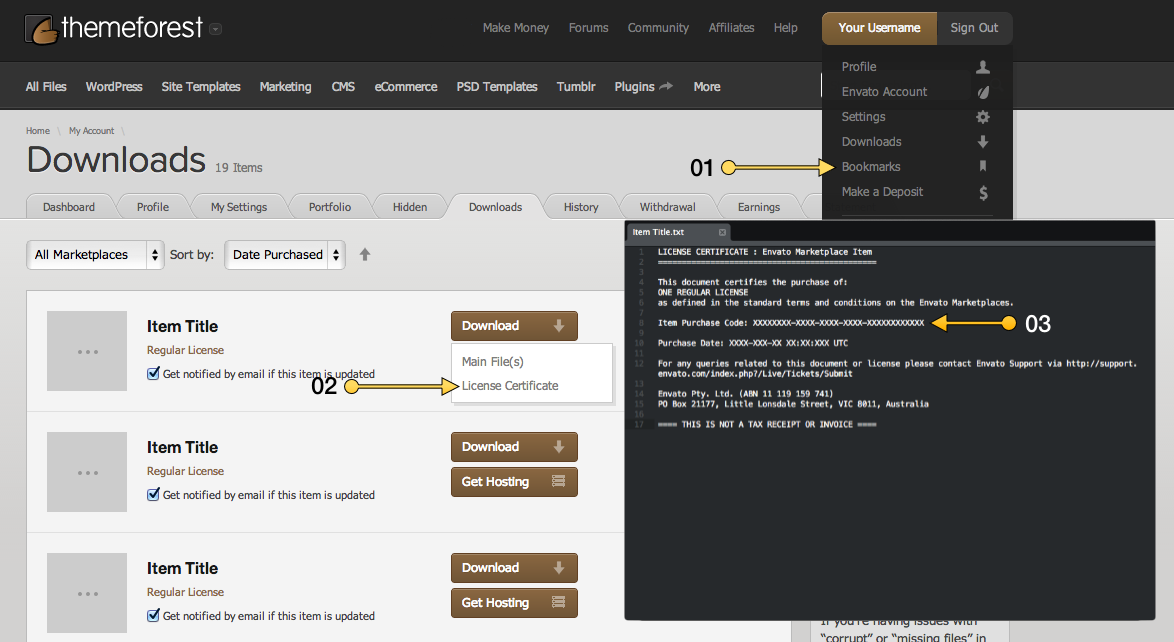 Where can I find my item purchase code?